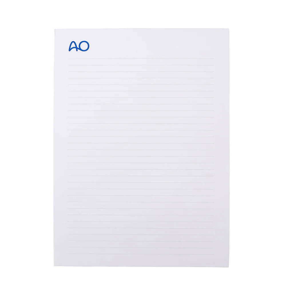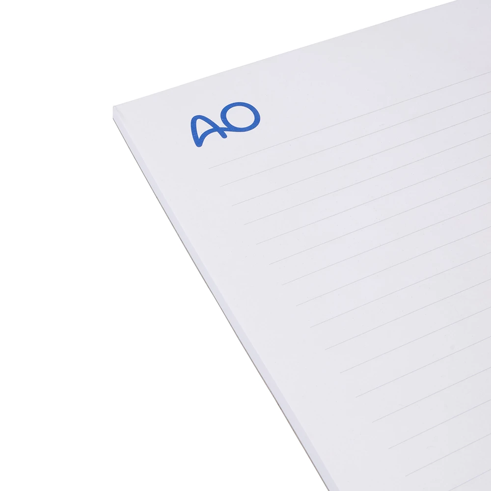 Classic notepad bound at the spine, with 50 sheets of paper 80 g/m², squared or lined, bottom sheet cardboard 700g/sqm.