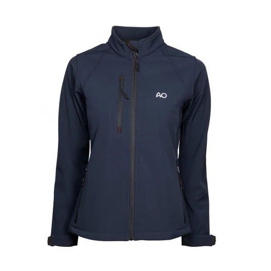 Ladies 3-layer softshell jacket. Water repellent (5,000mm water column), windproof and breathable, zipper with rain flap and protection on the collar, chest pocket with zipper, microfleece lining bonded to the outer material (3-layer), 40 ° washable, do not use fabric softener.
