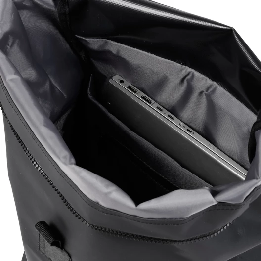 PET bottles (210D rPET), with padded compartment for laptop or tablet, waterproof zipper.